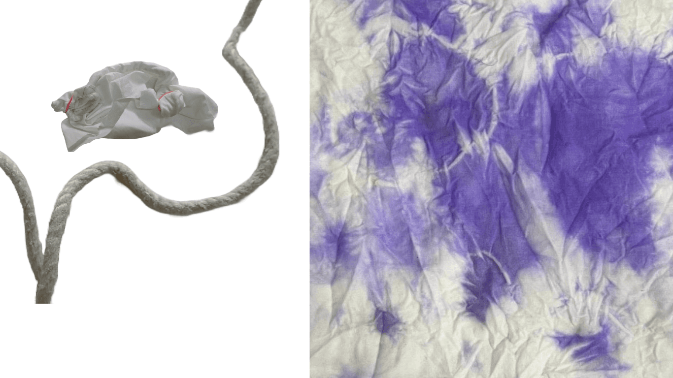 An exploration of colour, tension, and texture through tie and dye. Each material reacted uniquely to the resist methods, creating a diverse vocabulary of patterns that highlight the fluid, unpredictable beauty of dye.